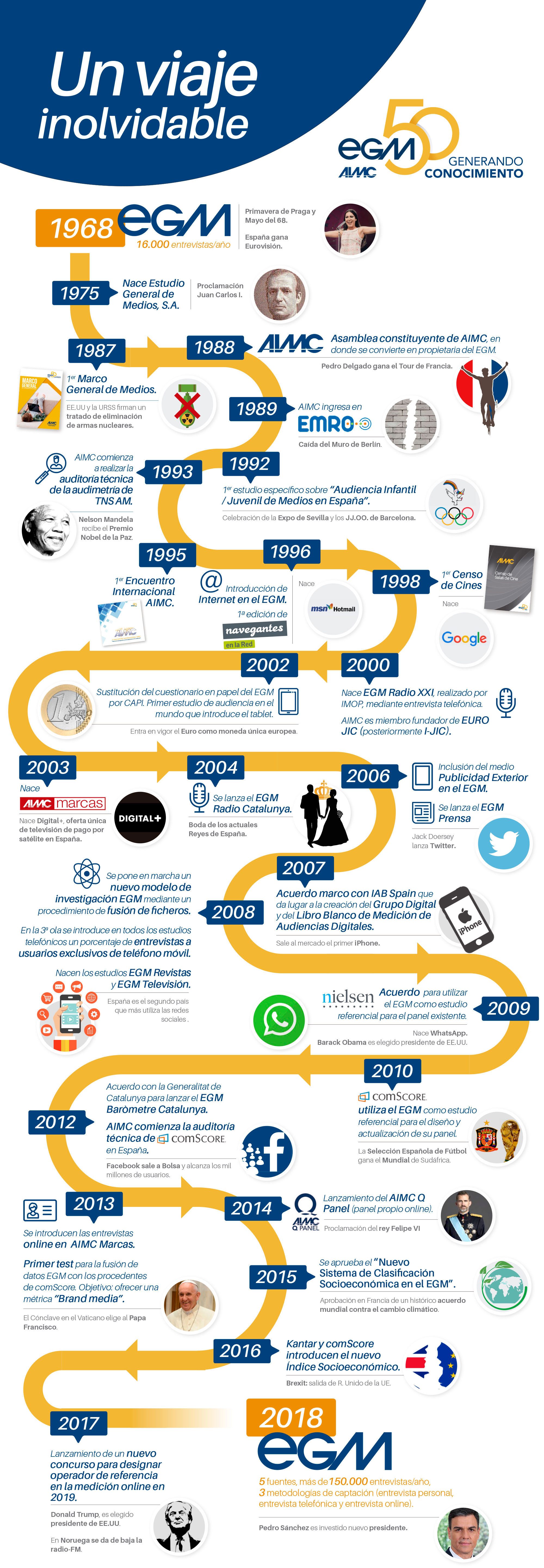 Como no podía ser de otra manera, y para adaptarse a las novedades de un mercado en constante movimiento y progresión, el EGM ha tenido muchos cambios, desde la metodología de la Captación de datos, hasta la Fusión de Estudios Monomedia al Multimedia. Pero lo que no ha cambiado en ningún momento ha sido el Rigor, la Transparencia y la Neutralidad del dato.
